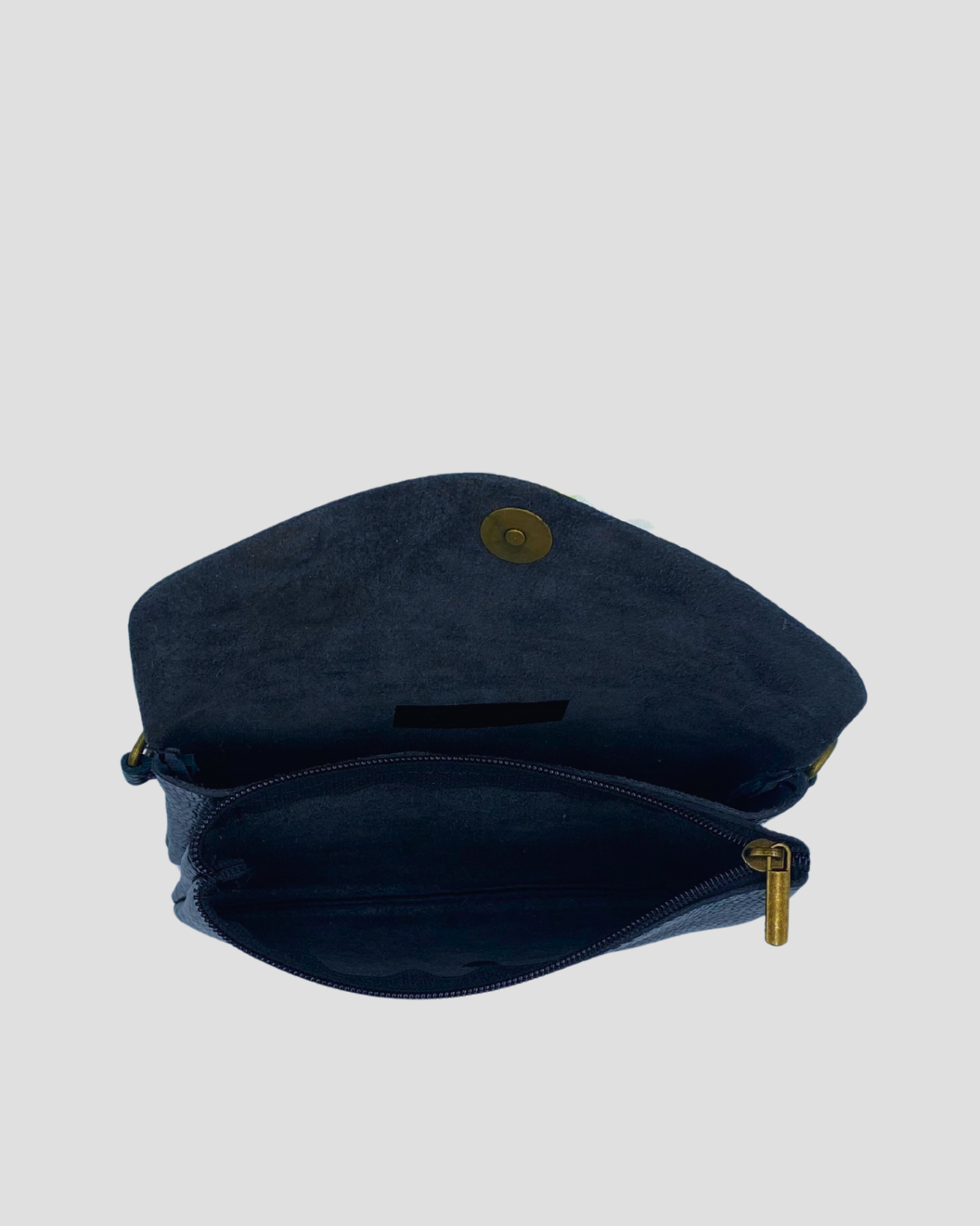 Le sac Natalia, un modèle élégant en cuir dollaro noir, reconnaissable par sa forme en U, est l'un des incontournables de Blue Lemon Paris. Porté avec une bandoulière en tissu et une finition en cuir, ou avec la chaîne, ou les deux, il peut être porté de plusieurs manières, adaptées à vos préférences. Pour plus de sécurité, vous avez la possibilité de le fermer entièrement avec un zip.