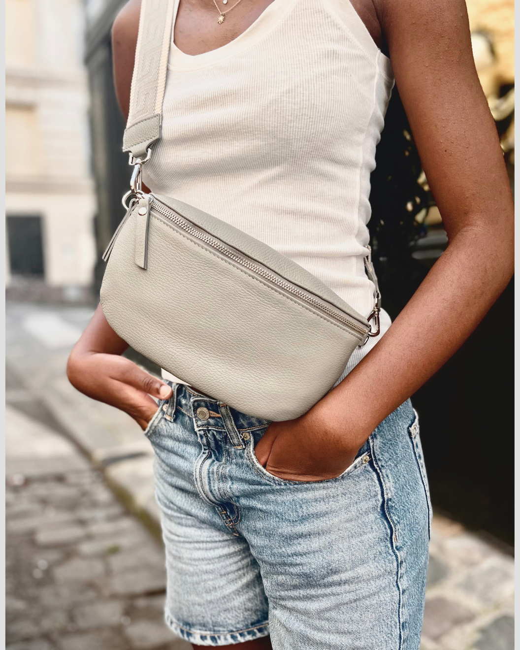 Le sac Banina en cuir Dollaro gris clair est l'accessoire polyvalent idéal pour affirmer votre style tout en bénéficiant d'une fusion parfaite entre mode et utilité. Porté avec une bandoulière réglable en tissu avec finition en cuir, ce sac vous offre la liberté de le personnaliser selon votre créativité, le mariant ainsi avec toutes vos tenues. Vous avez le choix entre un porté épaule décontracté ou un porté croisé tendance grâce à la bandoulière. De plus, pour une sécurité accrue, vous avez la possibilité de le fermer entièrement avec un zip.