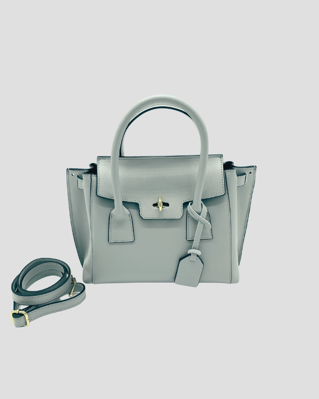 Le sac Mini Gabriella en cuir Palmellato et de couleur gris clair est la version XS du sac Gabriella. Son fermoir twist lui donne son style classique qui ne vous laissera pas indifférente. Vous pourrez le porter à la main ou en bandoulière.